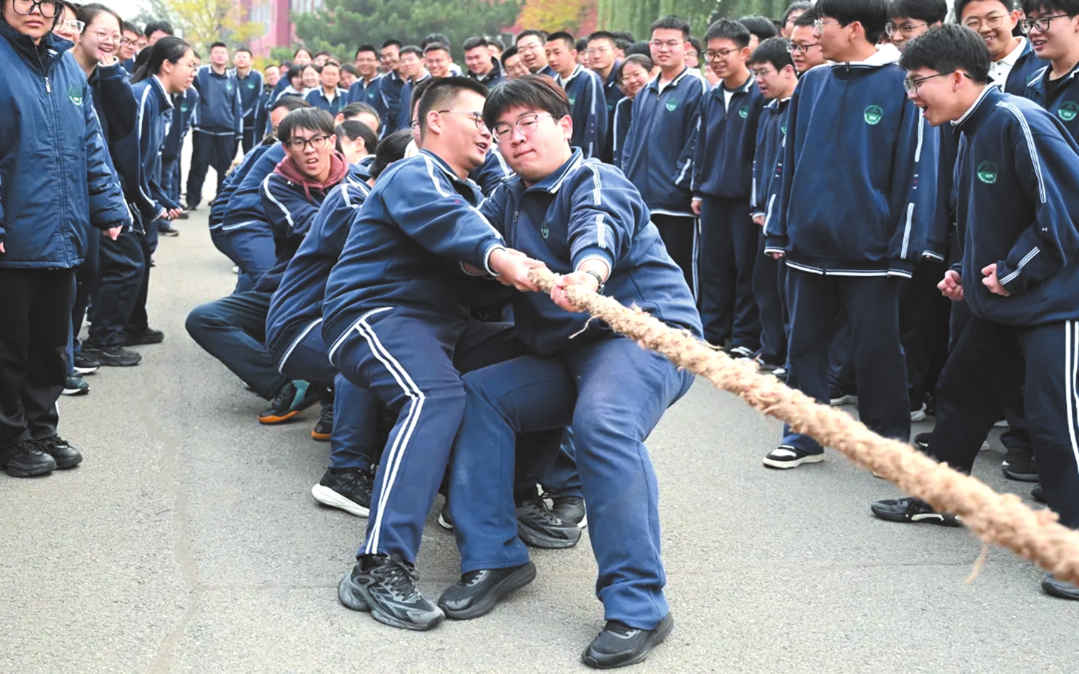 近日,忻州實(shí)驗(yàn)中學(xué)第22屆校園文化藝術(shù)體育節(jié)拔河比賽舉行。比賽哨聲一響,賽場(chǎng)瞬間沸騰。參賽隊(duì)員們緊握長(zhǎng)繩,雙腳蹬地,身體后傾,每一個(gè)動(dòng)作都凝聚著集體的力量與智慧。老師們化身為全情投入的啦啦隊(duì)長(zhǎng),揮動(dòng)雙臂,聲嘶力竭地為隊(duì)員們指揮節(jié)奏;各班同學(xué)則自發(fā)組成陣容強(qiáng)大后援團(tuán),將現(xiàn)場(chǎng)氛圍一次次推向高潮。 (記者 馮偉倫攝