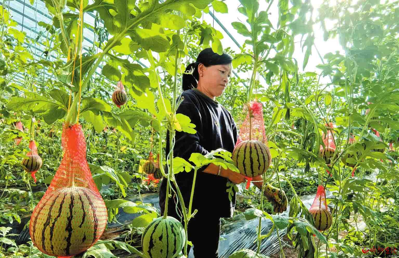 寧武縣充分發(fā)揮地域優(yōu)勢,把設(shè)施蔬菜產(chǎn)業(yè)作為鞏固拓展脫貧攻堅(jiān)成果同鄉(xiāng)村振興有效銜接的有力抓手,積極扶持、鼓勵(lì)農(nóng)民大力發(fā)展周期短、產(chǎn)量高、單價(jià)高的設(shè)施蔬菜產(chǎn)業(yè),帶動(dòng)群眾增收致富。圖為鳳凰鎮(zhèn)周家堡村農(nóng)民在大棚采摘西瓜。(記者劉紀(jì)森攝)