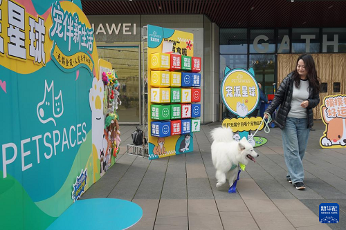 3月15日,在無(wú)錫市運(yùn)河匯街區(qū),一位女士帶著寵物狗參加活動(dòng)。(新華社發(fā) 劉臻睿 攝)
