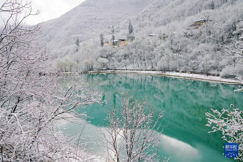 臨近春分節(jié)氣,甘肅省隴南市宕昌縣出現(xiàn)降雪,春雪將官鵝溝景區(qū)裝扮得銀裝素裹,白雪覆蓋下的樹木、湖泊和村莊共同構成一幅美麗畫卷。