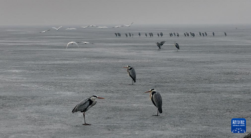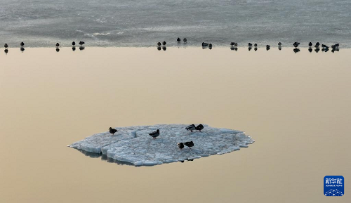 近日,大批候鳥飛抵松花江哈爾濱段江面。各種候鳥在冰面上休息,在水中嬉戲、覓食,盡顯春之生機(jī)。