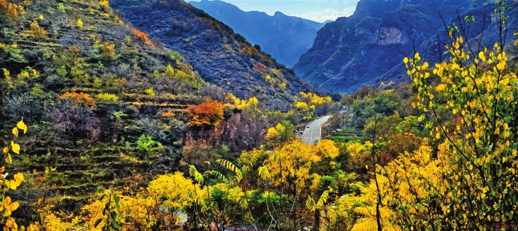 時(shí)至晚秋,走進(jìn)定襄東峪賞秋,遇見(jiàn)漫山遍野的紅柿滿枝。往日不起眼的青色果子,經(jīng)了秋霜,釀出淺黃或橘紅。扁圓的果實(shí),其色如火,點(diǎn)亮了藍(lán)色的天空,熱烈耀眼。