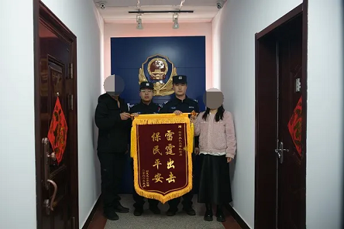 3月16日,被救助男子家屬專程來(lái)到定襄縣公安局巡特警大隊(duì),將一面印有“雷霆出擊 保民平安”大字的錦旗鄭重交到民輔警手中,言辭懇切,感激之情溢于言表。