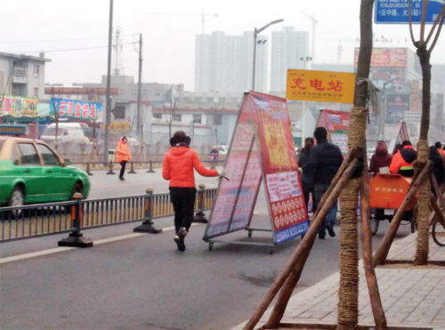 占用非機(jī)動(dòng)車道進(jìn)行廣告宣傳(王國棟 攝)