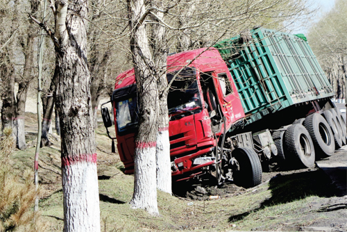 4 月20 日,記者途經(jīng)五寨縣三岔公路,看到一輛大貨車由于駕駛員疲勞駕駛撞在了路旁的大樹上,所幸未造成人員傷亡。在此筆者提醒廣大司機(jī)朋友,為了您的安全,切不可疲勞駕駛。(張志遠(yuǎn) 攝影報道)
