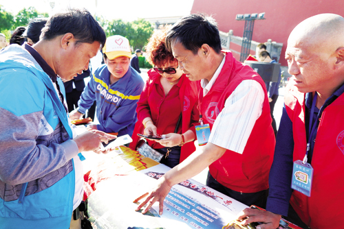 活動吸引了四面八方的群眾,大家紛紛拿出手機,掃描海報上的二維碼,現(xiàn)場關(guān)注“人說山西好風光”微信公眾號,為美麗家鄉(xiāng)忻州投上一票?!靶弥菸锶A天寶,人杰地靈,游遍神州,最美忻州”,“在忻州大地,佛教圣地五臺山、雄偉壯觀雁門關(guān)、薈萃十景蘆芽山、險峻神奇老牛灣、世外桃源娘娘灘,諸多景觀世人驚嘆,魅力無窮,支持忻州申辦全省旅游發(fā)展大會”。市民在現(xiàn)場說。圖為投票現(xiàn)場(魯明強)