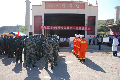 為了進(jìn)一步做好地質(zhì)災(zāi)害防治工作,偏關(guān)縣于6月8日下午在陳家營(yíng)鄉(xiāng)楊家營(yíng)村舉行2016年突發(fā)地質(zhì)災(zāi)害應(yīng)急演練。該縣地質(zhì)災(zāi)害防治領(lǐng)導(dǎo)組各成員單位相關(guān)人員以及各鄉(xiāng)鎮(zhèn)鄉(xiāng)鎮(zhèn)長(zhǎng)、分管負(fù)責(zé)人約100余人參加了演練。通過(guò)此次演練,進(jìn)一步檢驗(yàn)了各部門職責(zé)的分工落實(shí),應(yīng)急隊(duì)伍的協(xié)調(diào)能力、技術(shù)裝備的合理配置、受災(zāi)群眾的防災(zāi)自我意識(shí)等各方面情況,為迅速、高效、有序做好地質(zhì)災(zāi)害防治工作奠定了良好的基礎(chǔ)。圖為演練現(xiàn)場(chǎng)。(劉源文 攝)