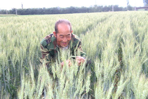 6月14日,農(nóng)民在原平市平地泉村地頭查看麥苗生長情況。該市積極引導(dǎo)農(nóng)民落實(shí)好一噴三防、拔草除雜等關(guān)鍵田管措施,確保種子純度。小麥進(jìn)入飽滿期,長勢良好,豐收在望。(褚震 攝)