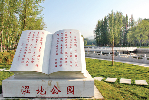 在寒旱山區(qū)的五臺(tái)縣,上世紀(jì)七十年代修建了一座唐家灣水庫,水庫下游自然形成數(shù)千米長(zhǎng)的濕地風(fēng)景帶。五臺(tái)縣借此濕地帶建成的濕地公園近日竣工。