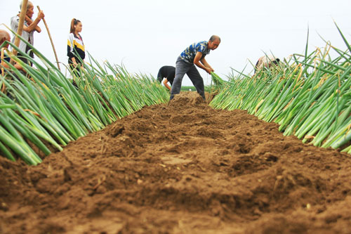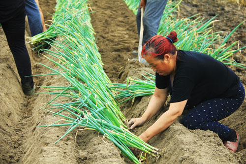 7月9日,原平市小河村民正在小麥收割田里回茬栽大蔥。原平市調整種植結構,適應市場變化收到了較好的效果。在平川地區(qū),根據無霜期時間長,大力發(fā)展兩茬田種植,糧食與蔬菜得到均衡,既確保增產和市民菜籃子蔬菜供應,又促進了農民增收。(吉建平 攝)