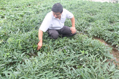 為了充分發(fā)揮紅薯新品種龍薯一號的優(yōu)良中性,加快新品種的推廣步伐。7月20日,原平市農(nóng)業(yè)學校種植科劉主任在實訓基地查看長勢喜人的新品種紅薯。近年來,該校利用新技術培育脫毒苗進行新作物、新品種的試驗示范,為農(nóng)民脫貧增產(chǎn)增收發(fā)揮了積極作用,拓寬了農(nóng)民致富路子。(褚震 攝)
