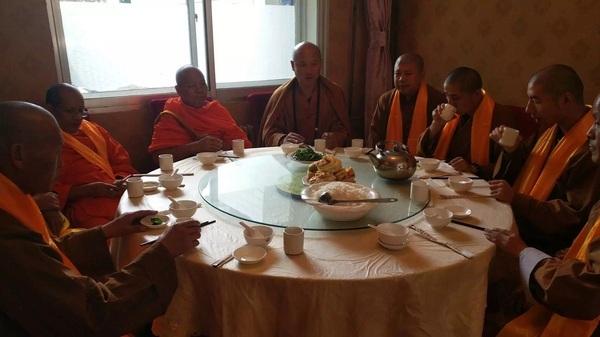 五臺山東臺頂望海寺住釋覺一法師攜眾弟子將代表中國五臺山法界出席此次活動。抵達青海省西寧市后,釋覺一法師與泰國僧人、泰國文化部部長等國際友人共進午餐并與眾僧人交流了兩國的佛教文化。