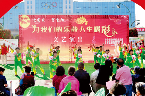 大合唱《老人真好》拉開了演出的帷幕。緊接著,由老干部們自編自演的舞蹈《琴臺古韻》、老年模特表演的《快樂老頭》、男聲合唱《夕陽紅》、舞蹈《旗袍秀》等節(jié)目陸續(xù)登臺、精彩亮相。這些節(jié)目從不同角度反映了我市城市建設(shè)的巨大變化,歌頌了我市經(jīng)濟(jì)、社會、文化等方面的發(fā)展成就。老年人老有所樂、老有所學(xué),積極樂觀的精神風(fēng)貌,給現(xiàn)場觀眾帶來了歡樂和感動。圖為演出現(xiàn)場。(張志遠(yuǎn) 攝)