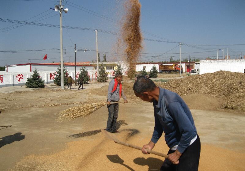 “糜米撈飯豆腐菜,皇帝老爺也喜愛。”連日來,河曲縣山區(qū)農民抓緊收割做“糜米撈飯”的糜子,在村頭場面上“熬晌”碾場、揚場,到處彌散著糜米的芳香。當一堆堆金燦燦的糜米呈現在場面,老鄉(xiāng)們醉了樂了。圖為柏鹿泉村農民打場的情景。(賈金理)