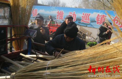 冬閑季節(jié),河曲縣農(nóng)民千方百計開辟增收門路,民間形式的冬季行動正在升溫。夏營村農(nóng)民利用俗稱“直芨”的芨芨草手工制作大掃帚,分量足、扎得牢,而且承諾“吊頭一把換兩把”,解決了群眾為“吊頭”而煩惱的后顧之憂,吸引群眾前來選購。圖為11月27日在巡鎮(zhèn)趕集的群眾選購“直芨”大掃帚。(賈金理 攝)