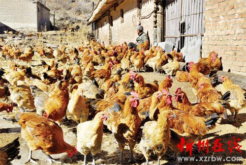五寨縣前所鄉(xiāng)經(jīng)堂寺村利用荒山荒坡荒草多的自然優(yōu)勢,大力發(fā)展散養(yǎng)雞。目前,養(yǎng)雞已成為該村的一項(xiàng)支柱產(chǎn)業(yè)。圖為鼎盛家雞養(yǎng)殖基地健康的雞群。(楊峻峰 攝)