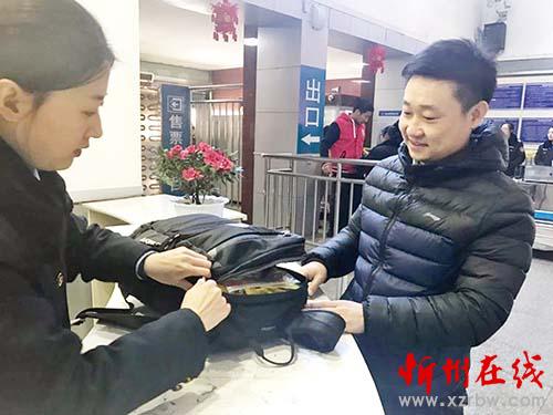 本報(bào)訊2月2日,農(nóng)歷大年初六,上午10點(diǎn),忻州火車站“心之舟”服務(wù)臺工作人員杜蕊在巡視候車室時(shí),發(fā)現(xiàn)座椅上有一個(gè)黑色背包(內(nèi)裝嬰兒用品),問詢周圍旅客無人認(rèn)領(lǐng)后,立即聯(lián)系廣播室對售票廳、站臺進(jìn)行廣播失物招領(lǐng)。此時(shí),在站臺上等車的旅客張先生聽到廣播,意識到背包丟失,立即聯(lián)系到工作人員,在登車前取回遺落的背包。張先生稱,自己攜帶了好幾件行李,檢票時(shí)著著急急也沒有清點(diǎn),他非常感謝車站的工作人員。