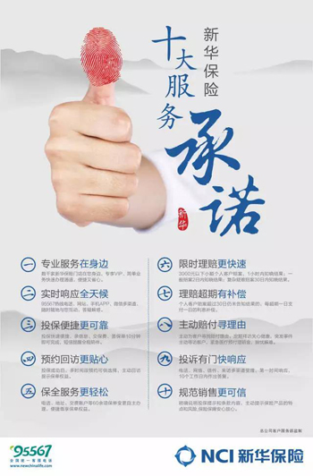 數(shù)十萬新華人滿懷誠意向您莊嚴(yán)宣誓“十大服務(wù)承諾”,竭誠為您提供便捷、專業(yè)的保險(xiǎn)金融服務(wù)!