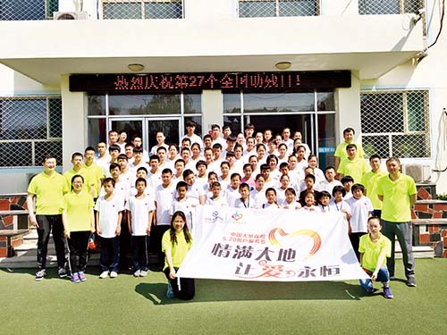 在全國助殘日前夕,5月20日,大地財(cái)產(chǎn)股份有限公司忻州分公司的愛心志愿者們來到忻州市特殊教育學(xué)校為學(xué)生們捐贈了籃球、羽毛球拍、書本等價(jià)值3千余元的文體用品。圖為志愿者群體與學(xué)生合影。郭浩東 攝影報(bào)道