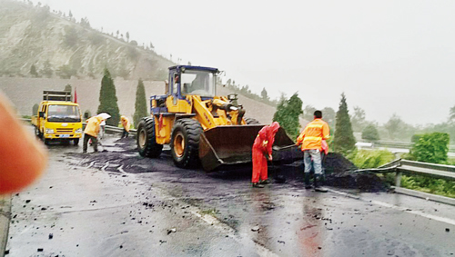 7月6日凌晨3點,忻州高速公路養(yǎng)護工區(qū)接到忻州高速公路管理處電話通知:K654路段通往三家村收費站互通匝道入口處,有一車輛側(cè)翻橫于路中拋撒煤面,影響了公路正常通行,需及時處置。養(yǎng)護工區(qū)接到通知后立即啟動應急預案,出動搶險人員9名、工具車一輛、皮卡車一輛、鏟車一臺、自卸汽車一臺火速趕往現(xiàn)場。搶險人員冒著風雨,按照標準設置了警示標志,經(jīng)過三個多小時的緊張工作,清掃工作全部完成,路面恢復整潔暢通,保障了高速公路的安全通行。(任淑萍 攝)