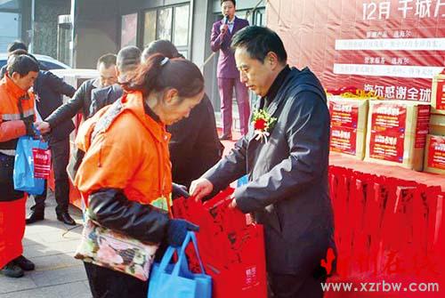 | 環(huán)衛(wèi)工人獲贈(zèng)防寒用品 |