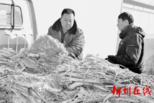 1月19日,原平市新原鄉(xiāng)新華街村的農(nóng)民正在市場上銷售大蔥。近年來,該市農(nóng)民大力發(fā)展一村一品種植業(yè),形成了規(guī)?;?、、品牌化、效益化,有效地促進(jìn)了農(nóng)民增產(chǎn)增收。趙春曉 攝