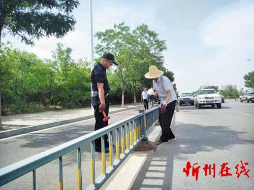 交警聞風(fēng)而動 建設(shè)南路破損護欄底座全部更換