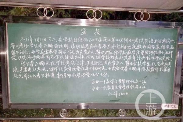 因此事件受罰的還有兩位老師。通報指出,該場監(jiān)考教師李春蘭、承包片區(qū)巡視教師周華軍指導監(jiān)督不到位,與學校要求不一致。為教育本人,警示大家,決定給予兩名教師全校通報批評,“同時按學校相關規(guī)定在年終考核中予以兌現”。