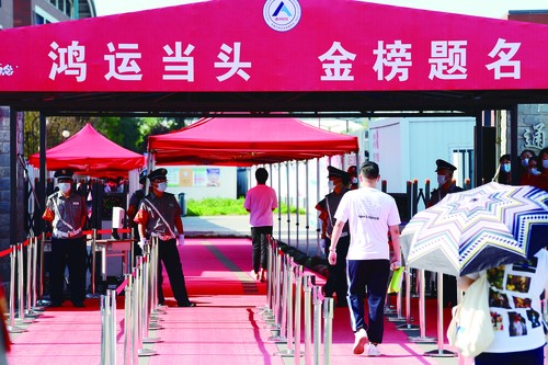 在北京市人大附中通州校區(qū)高考考點,考生正步入考場。 中國婦女報·中國婦女網(wǎng)記者 楊睿/攝