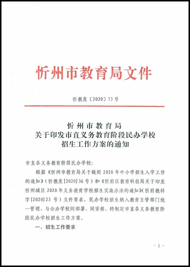 忻州市教育局關(guān)于印發(fā)市直義務(wù)教育階段民辦學(xué)校招生工作方案的通知