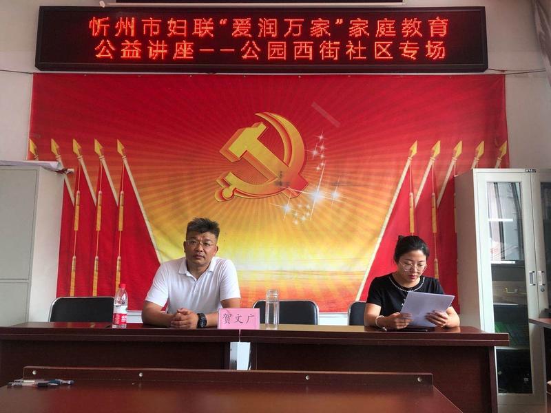 7月22日下午,忻州市長(zhǎng)征小學(xué)組織三年級(jí)30余名學(xué)生家長(zhǎng)在世紀(jì)花苑物業(yè)三樓參加了由忻州市婦聯(lián)組織的“愛(ài)潤(rùn)萬(wàn)家”家庭教育公益講座,講座由心理學(xué)研究中心賀文廣會(huì)長(zhǎng)主持。