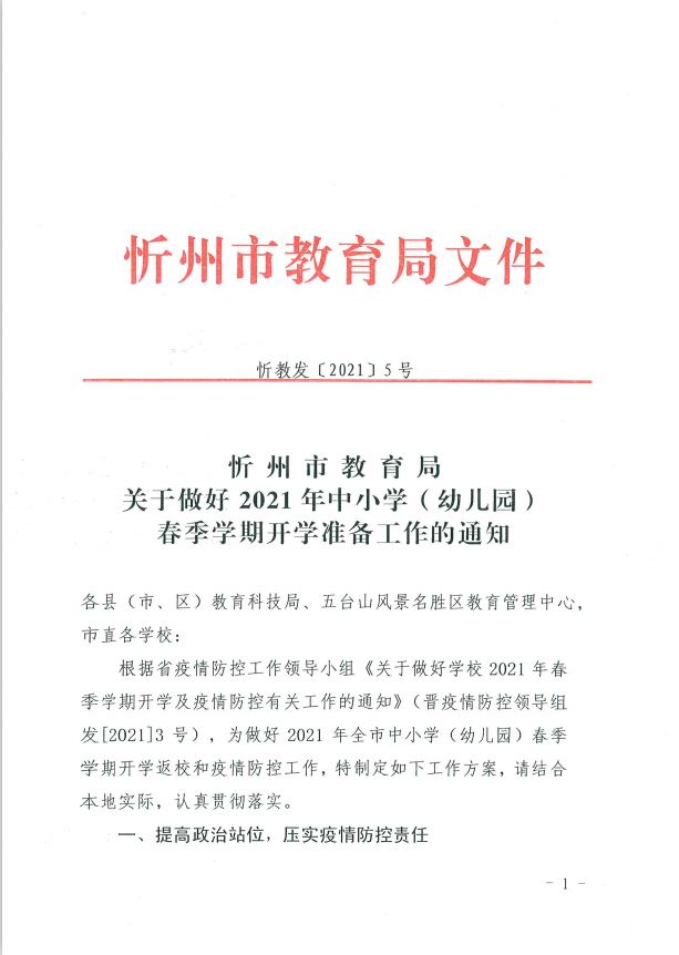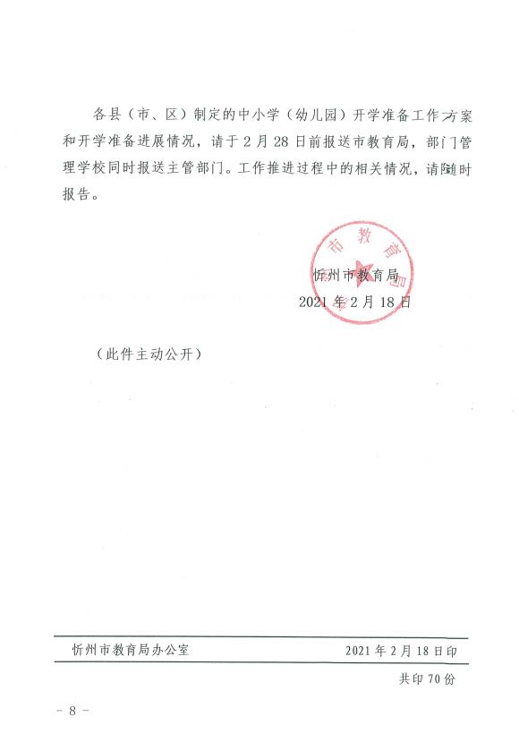 忻州市教育局關(guān)于做好2021年中小學(xué)開學(xué)準(zhǔn)備工作的通知
