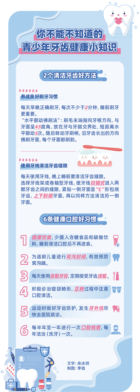 牙齒清潔,無(wú)齲齒,不疼痛,牙齦顏色正常、無(wú)出血現(xiàn)象,是口腔健康的主要特征。然而,我國(guó)青少年的口腔健康狀況不容樂(lè)觀。2020年全國(guó)愛牙日發(fā)布的數(shù)據(jù)顯示,我國(guó)66%的兒童患有齲齒。與此同時(shí),牙齦出血、牙結(jié)石等在青少年中也變得普遍,牙周健康狀況令人擔(dān)憂。