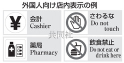 日本經(jīng)濟產(chǎn)業(yè)省出臺有關(guān)店內(nèi)標識的指南,要求盡量使用英語、圖形符號及漢字。(共同社)
