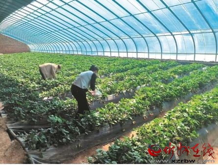 圖為市民在園區(qū)采摘草莓。