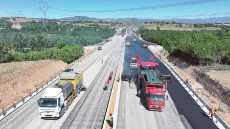 最近,國道108線改建工程(忻州段)激戰(zhàn)正酣,平地機、裝載機、瀝青攤鋪機等設備馬力全開,路面水穩(wěn)層攤鋪、滑膜機工藝澆筑中央護欄等工序正在緊鑼密鼓地進行。工人們忙碌穿梭,安全員逐項排查隱患,技術人員同步檢測施工質量,現場一片繁忙有序。掀起大干快干的新高潮,已進場施工作業(yè)人員300余人,主要機械設備進場100臺套,道路項目水穩(wěn)層鋪設完成總量的80%,下面層瀝青鋪設完成總量的60%、上面層瀝青鋪設完成總量的25%,中央分隔帶護欄累計完成59.41%。涌動的數字可以折射火熱的工作場面。國道108線忻州段改建工程項目是“十四五”期間全省規(guī)模最大、里程最長、投資最多的國省干線新改建工程。今年以來,山西路橋集團忻州國道項目建設管理有限公司提前吹響決戰(zhàn)的沖鋒號,圍繞項目建設爭分奪秒搶進度。項目部正采取“白+黑”“五+二”的工作模式,組織工人對路面、路基、交安、機電、綠化采取交叉作業(yè)等方式施工,在確保質量安全的前提下,各項工作正按照預期目標穩(wěn)步推進。