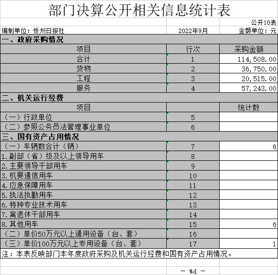 說明:忻州日報社沒有使用國有資本經(jīng)營預(yù)算安排的支出,故本表無數(shù)據(jù)。 十、部門決算公開相關(guān)信息統(tǒng)計表