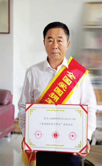 圖為山西省戰(zhàn)略物資道路運輸保障忻州總隊總隊長張志遠載譽歸來。(本報記者 陳寶 攝)