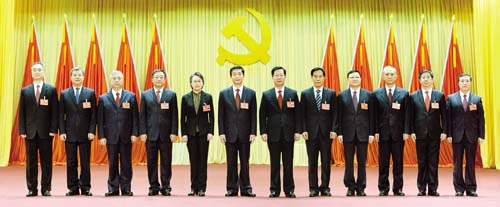 11月5日,中國(guó)共產(chǎn)黨山西省第十一屆委員會(huì)第一次全體會(huì)議在太原舉行,全會(huì)選舉產(chǎn)生了十一屆省委常委和書(shū)記、副書(shū)記,駱惠寧(左六)當(dāng)選為省委書(shū)記,樓陽(yáng)生(右六)、黃曉薇(左五)當(dāng)選為省委副書(shū)記,高建民(右五)、孫紹騁(左四)、王偉中(右四)、盛茂林(左三)、任建華(右三)、羅清宇(左二)、張吉福(右二)、王清憲(左一)、廉毅敏(右一)當(dāng)選為省委常委。山西日?qǐng)?bào)記者 李聯(lián)軍 攝