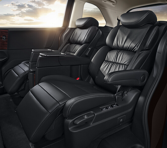全新一代艾力紳第二排座椅堪比飛機頭等艙,可橫向、縱向方位調(diào)節(jié),實現(xiàn)多樣空間變化,而且還可電動調(diào)節(jié)椅背和腿托,手動調(diào)節(jié)肩部角度,從容享受舒適坐姿。且具備座椅加熱功能,實現(xiàn)了同級別最優(yōu)的乘坐舒適性,隱藏在二排的扶手型小桌板商務(wù)范十足,全系標配的電動雙天窗大幅提升了乘坐者的舒適感。