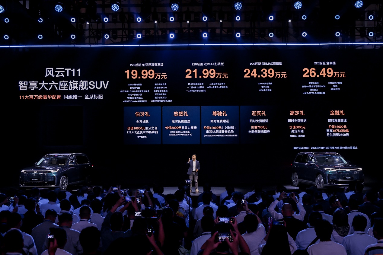 10月13日,以“兌現(xiàn)”為主題的風(fēng)云T11家庭品鑒日暨預(yù)售發(fā)布會在安徽蕪湖圓滿收官。作為風(fēng)云品牌煥新后的首款旗艦級SUV,風(fēng)云T11定位為“智享大六座旗艦SUV”。新車以“頂格對標(biāo)”為理念,憑借“超大更好”四大核心價值、三大沉浸式場景與11大全系標(biāo)配,兌現(xiàn)用戶對品質(zhì)生活的全維期待。