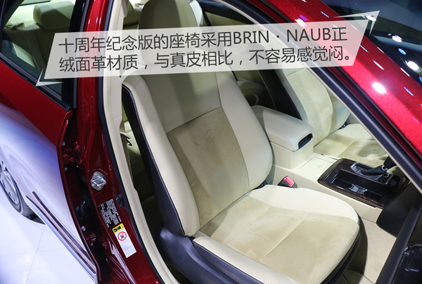 十周年紀(jì)念版凱美瑞將原本就已經(jīng)是真皮包裹的座椅更換了“新裝”,采用了最新研發(fā)的BRIN?NAUB材質(zhì)的正絨面革。與真皮材質(zhì)相比,這種全新的材料不容易有悶的感覺,夏天的時(shí)候不會(huì)越坐越熱。冬天的時(shí)候,剛坐進(jìn)車?yán)镆膊粫?huì)感覺特別涼,這樣直接省去了再配坐墊的麻煩。BRIN?NAUB材質(zhì)還具有更好的彈性和延展性,長(zhǎng)期坐壓之后不易變形。