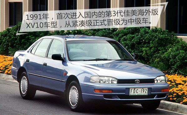 在5代之前,最先進(jìn)口引入國(guó)內(nèi)的是第3代佳美,這是非常具有歷史意義的一代車型,不但正式確立了佳美在豐田“全球車”陣營(yíng)中的主力位置,還順帶打開了中國(guó)市場(chǎng)。首次進(jìn)入國(guó)內(nèi)市場(chǎng)的是第3代佳美(1991-1996)針對(duì)海外市場(chǎng)推出的XV10車型,與日本本土的V30不同,XV10從一輛緊湊級(jí)轎車“成長(zhǎng)為”一輛B級(jí)車。