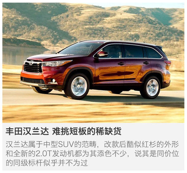 隨著進口大眾"Tiguan"上市和國產(chǎn)大眾途觀L的價格公布,讓眾多圍觀群眾為之咋舌,目前全新進口Tiguan和國產(chǎn)大眾途觀L可謂是目前最火爆的車型,前者上市價格26-39萬,后者前期上市的1.8T與2.0T車型的起步價格近28萬,頂配達到36萬;遠高于目前眾多同級別SUV,且按照之前的套路,加價也是可能的事情......因此,就不如去看看那些同級別對手們,至少要先等新車的熱乎氣兒澇澇再說。
