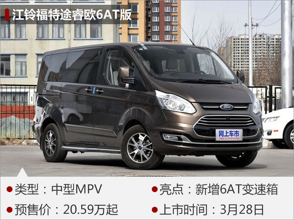 途睿歐是江鈴福特旗下一款MPV車(chē)型,目前全系均為手動(dòng)擋車(chē)型,其自動(dòng)檔車(chē)型將于3月28日上市。外觀方面,新車(chē)前臉使用了六邊形進(jìn)氣格柵,側(cè)面配有雙五輻式輪轂,下部則搭載了金屬踏板。車(chē)內(nèi)配有四輻式多功能方向盤(pán)、7英寸中控液晶顯示屏以及自動(dòng)恒溫空調(diào)系統(tǒng)等舒適實(shí)用配置。此外新車(chē)還配備了博世ESP系統(tǒng)、HSA坡道輔助系統(tǒng)以及倒車(chē)影像等科技安全配置。途睿歐采用了福特2.0T EcoBoost渦輪增壓發(fā)動(dòng)機(jī),最大功率為149kW,峰值扭矩達(dá)到了300Nm。