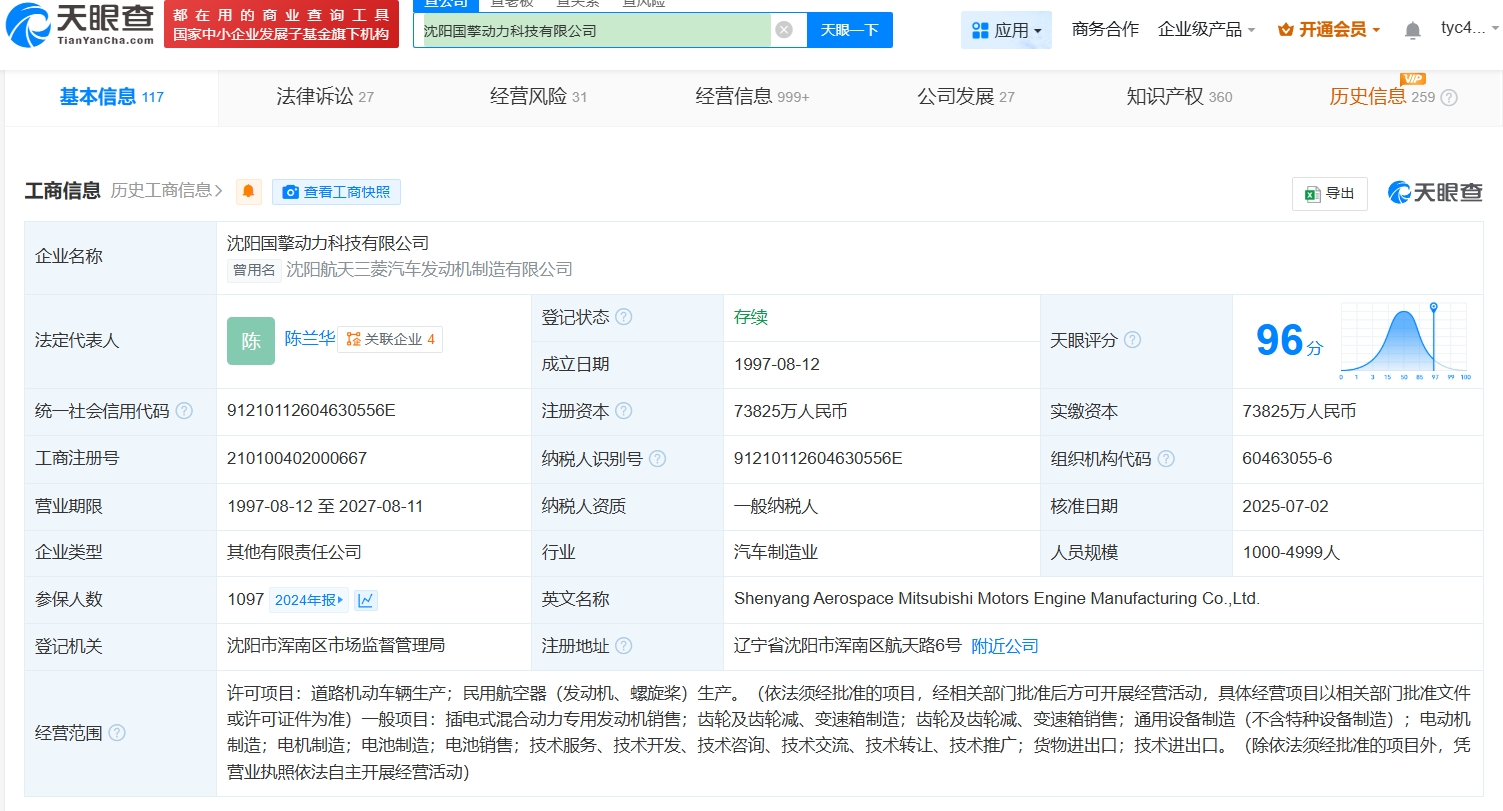 天眼查顯示,航天三菱已于今年7月2日更名為“沈陽國擎動(dòng)力科技有限公司”,同時(shí)三菱商事株式會社、三菱自動(dòng)車工業(yè)株式會社、馬中投資控股有限公司均退出投資人之列,股東變更后的名單中出現(xiàn)北京賽苜科技有限公司。