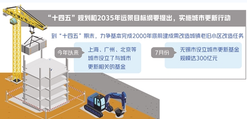 房企參與城市更新有望獲得更多支持?!笆奈濉币?guī)劃和2035年遠景目標(biāo)綱要明確提出,實施城市更新行動。老舊小區(qū)改造是城市更新的重要內(nèi)容之一,我國提出,到“十四五”期末,結(jié)合各地實際,力爭基本完成2000年底前建成需改造城鎮(zhèn)老舊小區(qū)改造任務(wù)。住房和城鄉(xiāng)建設(shè)部有關(guān)負(fù)責(zé)人曾表示,鼓勵房地產(chǎn)開發(fā)企業(yè)參與老舊小區(qū)改造。今年以來,多省市密集出臺相關(guān)舉措推進城市更新。除上海設(shè)立了城市更新基金以外,據(jù)報道,7月份無錫市也設(shè)立了城市更新基金,基金規(guī)模達300億元,專項用于投資無錫舊城區(qū)改造和城市更新項目規(guī)劃、建設(shè)、開發(fā)及運營等。此外,廣州、北京等城市也設(shè)立了與城市更新相關(guān)的基金。