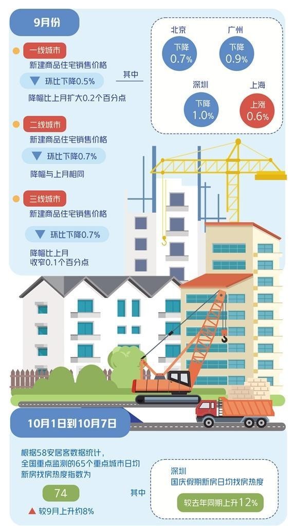 9月26日,中央政治局會(huì)議定調(diào)“要促進(jìn)房地產(chǎn)市場(chǎng)止跌回穩(wěn)”,釋放出“穩(wěn)地產(chǎn)”信號(hào)。隨后,一線城市集中優(yōu)化樓市政策,廣州全面取消限購(gòu),北京、上海、深圳優(yōu)化限購(gòu)、限貸政策,北京、上海明確將及時(shí)取消普宅認(rèn)定標(biāo)準(zhǔn),深圳取消限售,上海、深圳增值稅免征年限“5改2”,帶動(dòng)國(guó)慶假期樓市熱度顯著提升。