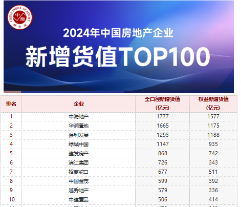綜合多家機(jī)構(gòu)統(tǒng)計,從新增貨值來看,中海地產(chǎn)、華潤置地和保利發(fā)展位列前三。2024年,中海地產(chǎn)以1777億元新增貨值占據(jù)榜單第一,華潤置地、保利發(fā)展分別以1665億元、1293億元,位列第二、第三名。