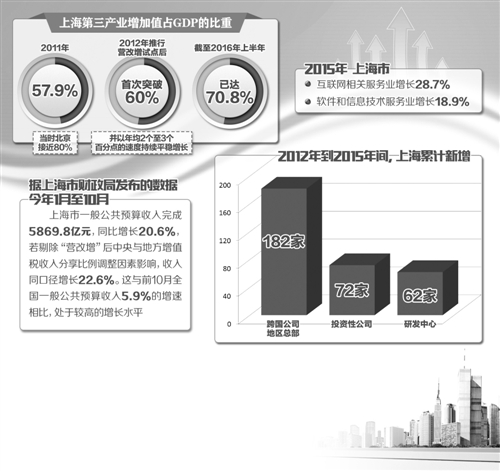 “營(yíng)改增方案出臺(tái)前,正在制定‘十二五’規(guī)劃的上海,遇到發(fā)展‘瓶頸’?!焙ū硎荆@在產(chǎn)業(yè)結(jié)構(gòu)上表現(xiàn)得尤為明顯。2011年,上海第三產(chǎn)業(yè)增加值占GDP的比重為57.9%,當(dāng)時(shí)北京接近80%。“對(duì)上海來(lái)說(shuō),要想謀求強(qiáng)勁的可持續(xù)發(fā)展,必須優(yōu)化產(chǎn)業(yè)結(jié)構(gòu),發(fā)展現(xiàn)代服務(wù)業(yè)、提高第三產(chǎn)業(yè)的比重。恰在此時(shí),營(yíng)改增帶來(lái)了契機(jī)。”胡怡建說(shuō)。
